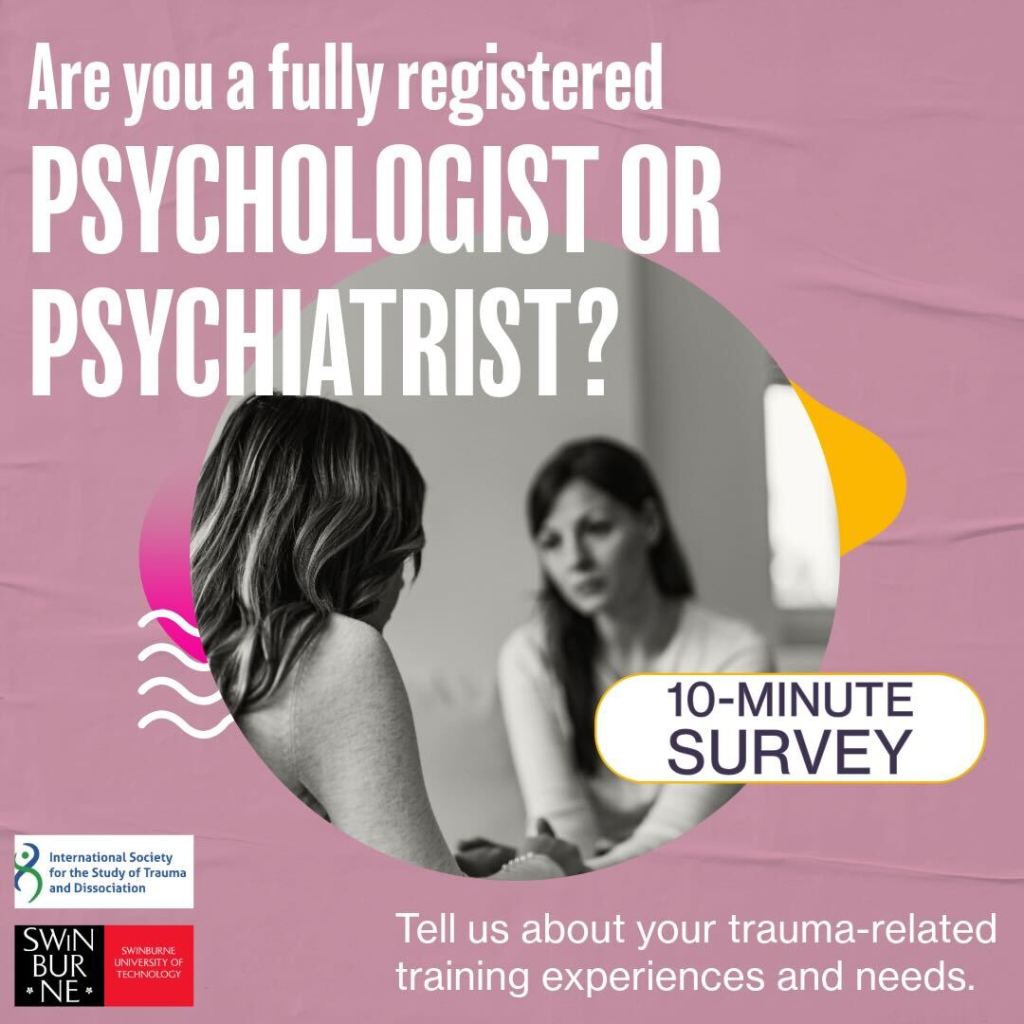 This study asks registered psychologists and psychiatrists to participate in a 10-minute survey about experiences and needs related to training on trauma.