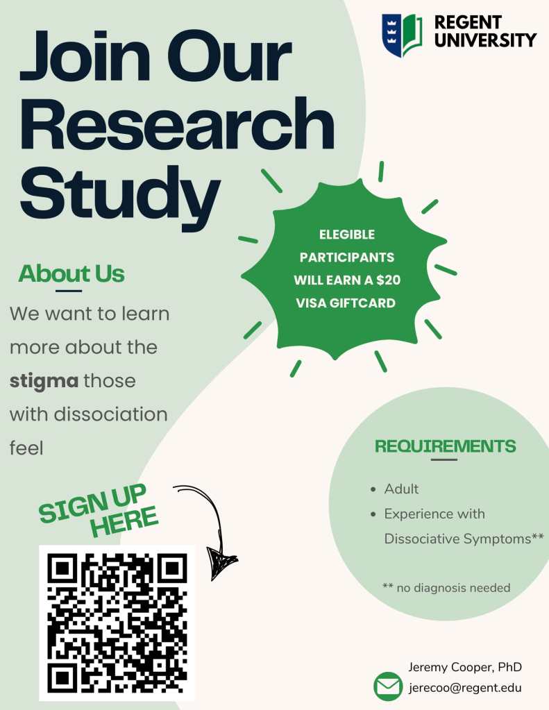 Contact Jeremy Cooper at jerecoo@regent.edu to take part, or scan the attached QR code.